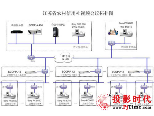 本次設計方案中,上海索高通過對江蘇農(nóng)信社的全省分布和各地實際需求,提供72套Sony PCS-G50視頻會議終端,IP網(wǎng)絡支持最大4Mbps的視頻傳輸速率,為用戶提供4CIF的高質量視頻效果,配合H.264的強大功能一起獲得更高的媒體處理能力。通過Radvision