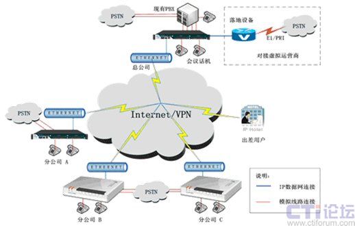 利用公共寬帶網(wǎng)絡,實現(xiàn)總公司和各個分公司之間IP電話互通功能,從而免除總公司和各個分公司內(nèi)部溝通的通訊市話和長話費用。