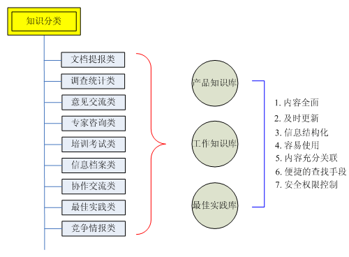 具體包括:為FAQ咨詢服務(wù)提供強(qiáng)力支持的產(chǎn)品知識庫;員工可以快速獲得工作知識,并能把自己的知識共享給別人的工作知識庫;支持各項(xiàng)事務(wù)最佳方案和方法操作處理的最佳實(shí)踐庫;以及支持知識庫實(shí)際運(yùn)行的知識地圖和搜索引擎。