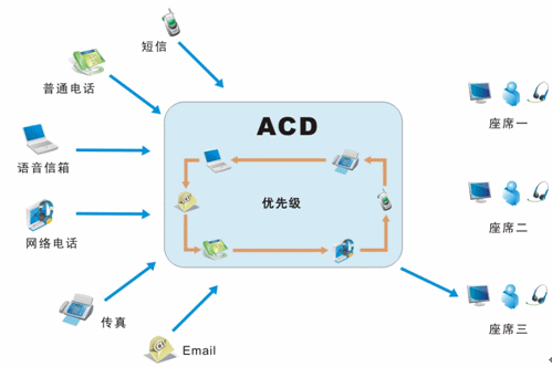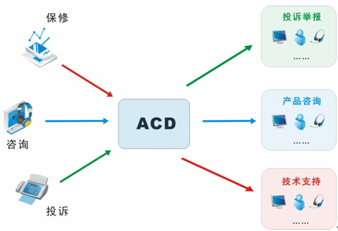 我們目前接入的媒體有很多,不再是傳統(tǒng)的單一電話接入方式,還包括網(wǎng)絡呼入、E-mail呼入,短信、留言等,所有的媒體接入都通過統(tǒng)一的排隊路由,以最優(yōu)化的策略分配給最適合的座席人員;并且,不同的媒體類型具有不同的優(yōu)先級,ACD(自動話務分配)根據(jù)優(yōu)先級和設定的排隊算法,自動實現(xiàn)媒體的統(tǒng)一智能路由。