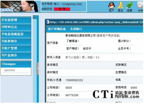 作為呼叫中心的核心功能,來(lái)電彈屏功能在客戶和服務(wù)代表之間建立了溝通的橋梁。當(dāng)電話接入客服代表電話振鈴的同時(shí),電腦屏幕會(huì)彈出客戶的相關(guān)資料。如果是新客戶,則彈出空白頁(yè)面,客服代表可以說(shuō)歡迎的同時(shí)錄入客戶資料,以備客戶下次來(lái)電時(shí)查詢。當(dāng)客戶在網(wǎng)上選購(gòu)產(chǎn)品時(shí),有問(wèn)題可以隨時(shí)打電話溝通,來(lái)時(shí)的同時(shí),座席電腦上彈出客戶已經(jīng)填寫的資料,座席對(duì)客戶的資料一目了然,提高了工作效率。來(lái)電彈屏的頁(yè)面可以根據(jù)用記要求定制。