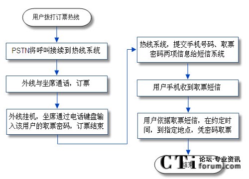1、用戶通過手機電話訂票,首先經(jīng)過PSTN進(jìn)入訂票熱線系統(tǒng)。