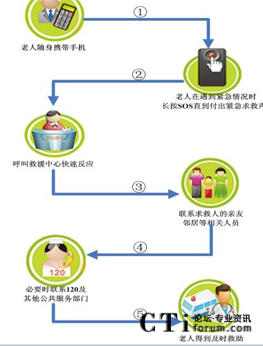老人使用不記任何電話號,按下紅鍵(盲人按粗糙鍵)就可發(fā)送緊急求救信號;按下綠鍵可以發(fā)送求助信號,求助信息根據(jù)用戶需要在同一時間發(fā)送到信息服務(wù)中心、社區(qū)網(wǎng)格管理員、老人指定親屬、物業(yè)公司、及有關(guān)部門,可實現(xiàn)完整信息獲取和快速響應(yīng),啟動多方通話進行緊急調(diào)度,保障老人的生命財產(chǎn)安全。