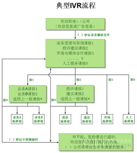 靈活性:IVR系統(tǒng)可同時(shí)運(yùn)行多個(gè)不同應(yīng)用。例如她可同時(shí)為企業(yè)內(nèi)部人員或企業(yè)客戶提供完全相互獨(dú)立的信息系統(tǒng)應(yīng)用。當(dāng)她處理一路來話時(shí),通過詢問一些相關(guān)信息,如內(nèi)部ID,供應(yīng)商ID,代理商ID等等,就可以自動(dòng)選擇應(yīng)該啟動(dòng)哪個(gè)應(yīng)用系統(tǒng)。