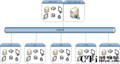 如圖,深圳南山地產(chǎn)視頻會議系統(tǒng)應(yīng)用規(guī)模為6個點,包括深圳、上海、長沙、惠陽、大亞灣、蘇州。服務(wù)器部署在深圳用來保證香港和內(nèi)地的鏈接效果,服務(wù)器出口帶寬為3M共享,各分會場通過互聯(lián)網(wǎng)訪問服務(wù)器。在這個網(wǎng)絡(luò)平臺上,紅杉樹網(wǎng)絡(luò)會議所提供的高質(zhì)量音視頻圖像、方便易用的文檔、文件共享數(shù)據(jù)功能,使得南山地產(chǎn)能夠在這個平臺上進行從桌面討論到會議室正式會議等各種規(guī)模的應(yīng)用。在這個平臺上,除了進行日常例會、業(yè)務(wù)交流等常見的應(yīng)用之外,業(yè)務(wù)培訓(xùn)、異地招聘等也是經(jīng)常進行的內(nèi)容。業(yè)務(wù)人員利用數(shù)據(jù)功能,節(jié)約了以前培訓(xùn)所花費的大量精力和時間,為新項目迅速占領(lǐng)市場掌握了主動。