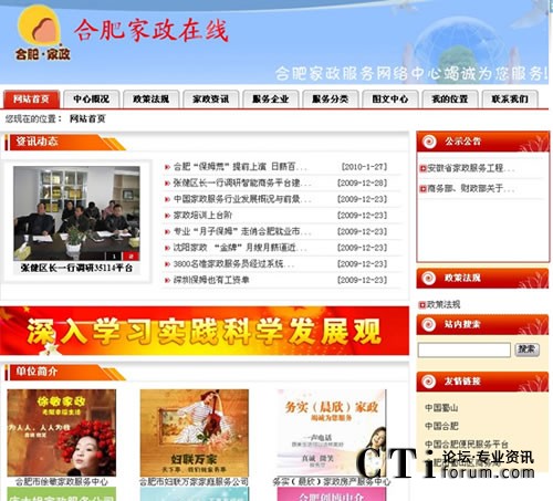 CTI論壇(ctiforum)3月5日消息(記者 楊毅):2009年末,由深圳市深海捷科技有限公司(簡稱“深海捷”)提供技術(shù)支持的合肥家政服務(wù)網(wǎng)絡(luò)中心正式上線。合肥家政網(wǎng)絡(luò)中心是安徽省商務(wù)部第一批批準建立的家政服務(wù)網(wǎng)絡(luò)中心,合肥家政網(wǎng)絡(luò)中心的建立為安徽全省的家政服務(wù)建設(shè)提供了極大地參考標準。市民足不出戶,通過登錄合肥家政服務(wù)網(wǎng)絡(luò)中心官方網(wǎng)站:http://web1.35114.cc/WebSite/51628/index.shtm即可找到滿意的家政服務(wù)。