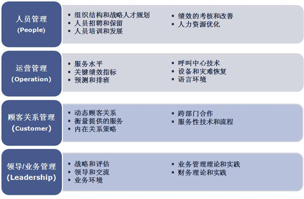 呼叫中心中高層管理人員認(rèn)證是為呼叫中心行業(yè)建立自己的“黃埔軍!。通過(guò)一系列的培訓(xùn),包含人員管理,運(yùn)營(yíng)管理,顧客關(guān)系管理和領(lǐng)導(dǎo)/業(yè)務(wù)管理,來(lái)為呼叫中心行業(yè)培養(yǎng)合適的中高層管理人員。