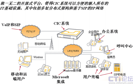 對于企業(yè)而言,CIC是一套基于IP的完整的通信解決方案,與傳統(tǒng)PBX電話系統(tǒng)不同的是,CIC通過一個單一的軟件平臺,可以將語音,數(shù)據(jù)和企業(yè)員工有機(jī)的聯(lián)系起來,而傳統(tǒng)的PBX電話系統(tǒng)只能提供語音服務(wù),無法和現(xiàn)今流行的IP信息系統(tǒng)相結(jié)合。