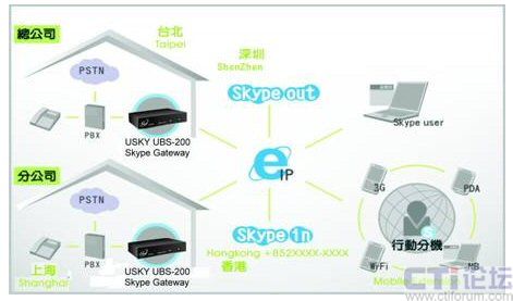 本公司新推出USKY UBS-400(4 ports)/UBS-200(2 ports) Skype Gateway,是專(zhuān)為企業(yè)用戶(hù)所設(shè)計(jì)的外接式Skype網(wǎng)關(guān)。只須將原有電話交換機(jī)(PBX)連接上我們的USKY UBS-400/UBS-200,企業(yè)用戶(hù)無(wú)需改變撥號(hào)方式,便可輕松透過(guò)桌上電話撥打或接聽(tīng)Skype電話,將傳統(tǒng)電話提升為網(wǎng)絡(luò)電話(VoIP),既簡(jiǎn)單又方便!有效幫助企業(yè)用戶(hù)增加通話效率,更能大幅減少通話費(fèi)。