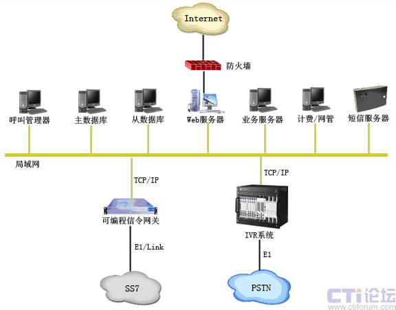 - IVR系統(tǒng):通過E1接入PSTN,控制該節(jié)點(diǎn)的話路交換及語音處理;