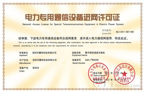 CTI論壇(ctiforum)12月22日消息(記者 張潔):日前從深圳市震有科技有限公司獲悉,震有科技數(shù)字程控調(diào)度交換機(jī)榮獲電力專用通信設(shè)備進(jìn)網(wǎng)許可證。