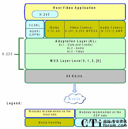 中間層是H.223協(xié)議,負責(zé)的媒體混合表格的交換(Multiplex Table),H.223的處理一般是用硬件實現(xiàn),典型的硬件處理芯片是Ti的6xxx視頻處理器。