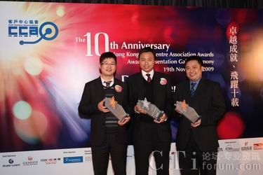 CTI論壇(ctiforum)11月20日消息(記者 張塵):11月19日晚,大中華區(qū)領(lǐng)先信息通訊技術(shù)服務(wù)商第一線安萊于2009年香港客戶中心大獎評選晚會中,再次囊括三項大獎:最佳外包客戶中心 (呼入)、最佳華南客戶中心 (100席以上) 及最佳離岸客戶中心。加上上個月由中國呼叫中心協(xié)會CNCCA授予的“2009中國(亞太)最佳外包呼叫中心”及全球IP通訊聯(lián)盟所頒發(fā)的“最佳外包呼叫中心供應(yīng)商(國內(nèi))”獎,第一線安萊在這個金秋時節(jié)可謂收獲頗豐。第一線安萊IP呼叫中心再次獲得業(yè)界的認(rèn)同,這也體現(xiàn)了第一線安萊在該項產(chǎn)品及服務(wù)方面擁有領(lǐng)先的優(yōu)勢,通過持續(xù)進(jìn)步,為客戶創(chuàng)造有利的營運模式,也有助于奠定企業(yè)服務(wù)的標(biāo)準(zhǔn),再度奪獎乃實至名歸。