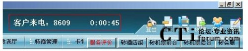實(shí)時(shí)顯示呼叫時(shí)長(zhǎng)和客戶來電號(hào)碼,并且顯示了常用的轉(zhuǎn)接業(yè)務(wù)組和軟電話可操作模塊。
