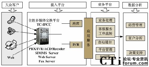 杭州全勝通訊有限公司自主研發(fā)的全勝多媒體IP呼叫中心平臺(tái)(TC-IPCC),是基于交換機(jī)級(jí)別的純IPCC平臺(tái)。該平臺(tái)集CTI、IVR、FAX、SMS、Email、錄音監(jiān)控、電話會(huì)議、統(tǒng)一智能路由、呼出管理等功能于一體,可用于構(gòu)建各類聯(lián)絡(luò)中心、自動(dòng)語音系統(tǒng)、熱線電話、會(huì)議電話、電話銷售等系統(tǒng),輕松滿足各行業(yè)客戶、合作伙伴個(gè)性化建設(shè)需求。