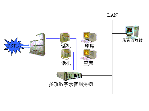 一、 錄音系統(tǒng)概念: 在通訊領(lǐng)域中,電話網(wǎng)范圍已經(jīng)普及到中國的各個(gè)角落成為主要的通信手段,通過電話人們可以相互溝通,傳達(dá)信息,通話過程中錄制有效的信息越來越得到各企事業(yè)的重視。在商務(wù)服務(wù)領(lǐng)域,各行業(yè)建設(shè)了客戶服務(wù)中心既"呼叫中心"代替?zhèn)鹘y(tǒng)的柜臺業(yè)務(wù),通過錄音記錄業(yè)務(wù)代表的服務(wù)質(zhì)量對其進(jìn)行監(jiān)督和考核以便提高企業(yè)的名譽(yù);在政府安全部門對一些重點(diǎn)監(jiān)控對象的往來通信進(jìn)行錄音和實(shí)時(shí)監(jiān)聽,以及對某些重要指令錄音。