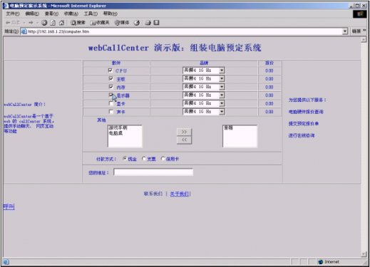 給基于交換機(jī)的呼叫中心,配備Web協(xié)作服務(wù)器和客戶(hù)端、座席端軟件包,使得利用PC上網(wǎng)的客戶(hù)可以通過(guò)因特網(wǎng)呼叫交換機(jī)中的組,使得應(yīng)答的座席,可以和客戶(hù)進(jìn)行實(shí)時(shí)文字交談、護(hù)航瀏覽、表單共享和共享白板。