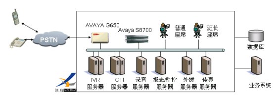 訊鳥軟件經(jīng)過周密的項目需求調(diào)查、分析,堅持穩(wěn)定性、開放性、擴充兼容性以及風險規(guī)避等設計、建設原則,集訊鳥CTI中間件與AVAYA S8700排隊機為一體,建立了該呼叫中心系統(tǒng)的核心部分。整個系統(tǒng)支持100個座席、100路錄音、60路IVR、30路傳真,支持擴展至500個座席規(guī)模,并且未來擴展座席及IVR、傳真線路非常方便,只要增加相關(guān)接口許可,配置合適的語音卡、傳真卡等即可。