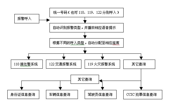 本方案所確立的110、119、122接處警模式是"集中接警、自動(dòng)分流處警"。