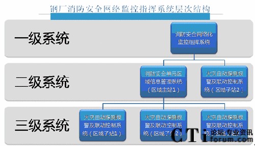 三級系統(tǒng)為“消防安全監(jiān)控指揮系統(tǒng)”,設(shè)在消防安全監(jiān)控指揮中心即新建廠區(qū)管控中心處,是新廠區(qū)的火災(zāi)等事故信息收集、匯總、處理的中心,其功能為:①自動獲取或通過火災(zāi)報警電話獲取二級系統(tǒng)的火災(zāi)信息(火災(zāi)發(fā)生的分廠名稱、具體工藝系統(tǒng)分區(qū)等),與二級系統(tǒng)進(jìn)行實(shí)時信息交互,并對二級系統(tǒng)實(shí)施指揮調(diào)度;②與廠區(qū)內(nèi)外的消防及其它搶險救災(zāi)機(jī)構(gòu)(醫(yī)療、交通、電力等)互聯(lián)互動;③與全廠級生產(chǎn)信息管理中心進(jìn)行信息交互和應(yīng)急聯(lián)動。