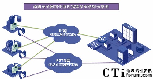 消防網(wǎng)絡(luò)傳輸設(shè)備通過以太網(wǎng)(TCP),電話線(PSTN),無線(GPRS、CDMA)將火災(zāi)報警主機(jī)接收到的火警及運(yùn)行信息上傳的鋼廠消防安全監(jiān)控指揮中心。