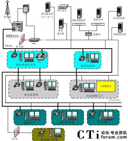 綜合指揮通過CTI技術(shù)實(shí)現(xiàn)有無線通訊指揮。