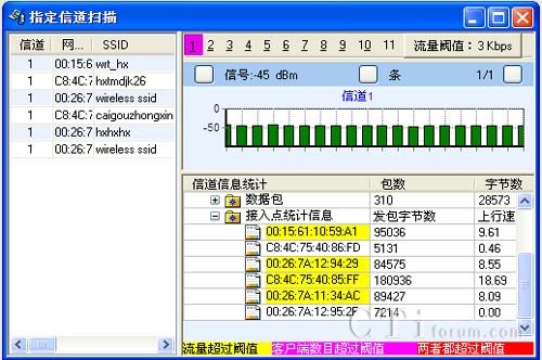 支持設(shè)備被動狀態(tài)下掃描802.11a/b/g/n所有信道,也可選擇信道進行掃描。統(tǒng)計匯總AP、STA、AdHoc等設(shè)備的數(shù)量,統(tǒng)計網(wǎng)絡(luò)中SSID網(wǎng)絡(luò)數(shù)量,能提供信道的信號強度、噪聲、信噪比、干擾參數(shù)指標(biāo)等信息。