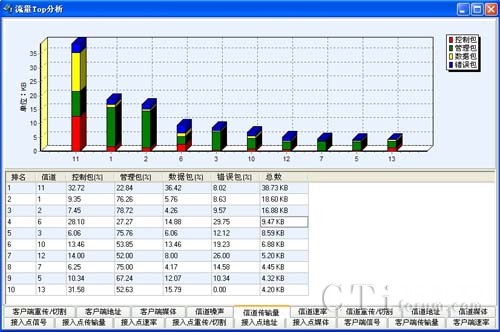 問題發(fā)現(xiàn):通過實時流量的統(tǒng)計分析,我們發(fā)現(xiàn)在信道6,AP數(shù)量10個,目前某AP接入終端數(shù)為16,對某些終端的服務(wù)質(zhì)量急劇降低,導(dǎo)致錯誤包過大。