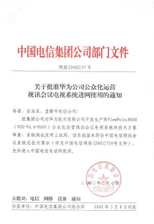 日前,在中國電信集團(tuán)公司組織的“新視通”公眾化視訊運(yùn)營許可證的測試中,華為公司具有完全自主知識產(chǎn)權(quán)的“視點(diǎn)通”ViewPoint 8000綜合視訊系統(tǒng)以其先進(jìn)的設(shè)計理念和卓越的產(chǎn)品性能,順利通過測試,成為業(yè)界第一個獲得中國電信集團(tuán)公司公眾視訊運(yùn)營許可證的產(chǎn)品。同時華為公司也成為目前業(yè)界唯一獲此認(rèn)證的設(shè)備供應(yīng)商。