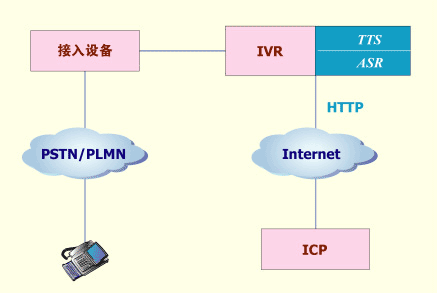 使用VXML語言編寫流程腳本或網(wǎng)頁,該腳本或網(wǎng)頁的內(nèi)容與固網(wǎng)短信終端上的菜單相對應(yīng),普通用戶可通過語音方式瀏覽該菜單。當(dāng)用戶選擇信息點(diǎn)播后,VoiceIE系統(tǒng)模擬普通固網(wǎng)短信終端向ICP發(fā)送請求,并接收ICP發(fā)來的文字信息,然后通過TTS技術(shù)向用戶播放文字信息。當(dāng)然,固網(wǎng)短信終端也可通過菜單瀏覽方式使用這些采用VXML語言編寫的業(yè)務(wù),采用VXML語言編寫網(wǎng)頁的工作可由ICP來完成。