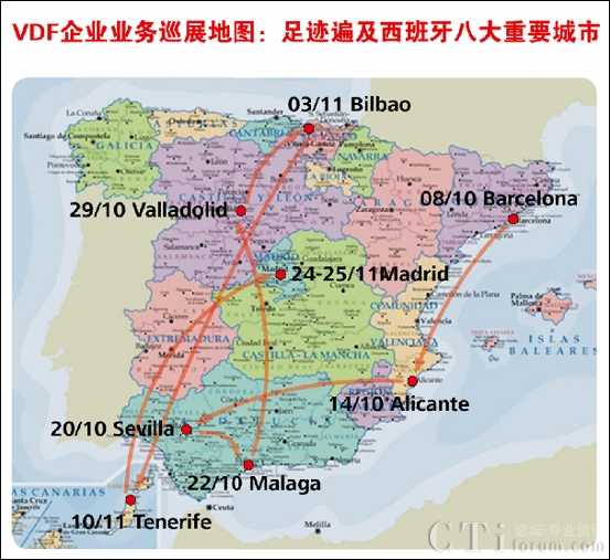 Vodafone 09企業(yè)業(yè)務(wù)巡展是Vodafone攜手10家重要合作伙伴和28家SP針對西班牙企業(yè)用戶舉行的一個(gè)大型巡展,整個(gè)展會(huì)歷時(shí)兩個(gè)月,以西班牙的經(jīng)濟(jì)文化中心Barcelona為起點(diǎn),途徑Alicante、Sevilla、Malaga、Valladolid、Bilbao、Tenerife,最后于11月24-25號(hào)在西班牙首府Madrid隆重謝幕。共有1萬多人、五千多家企業(yè)參加了本次展會(huì),受邀企業(yè)覆蓋到金融、貿(mào)易、電信、交通、建筑、服務(wù)、醫(yī)療保健等重要行業(yè),其中大都為移動(dòng)辦公需求旺盛需要保持實(shí)時(shí)協(xié)同的中小型企業(yè)。展會(huì)期間,華為歐洲地區(qū)部多位高層領(lǐng)導(dǎo)親臨展會(huì)現(xiàn)場指導(dǎo)工作,包括Vodafone系統(tǒng)部副總Edward Chan和張文林、代表處代表謝新平、歐洲軟件業(yè)務(wù)部領(lǐng)導(dǎo)林劼。領(lǐng)導(dǎo)們和客戶親切交流,并廣泛了解了其他SP展出的多項(xiàng)創(chuàng)新業(yè)務(wù)。