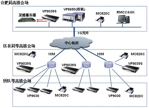 建成的安徽省煙草公司合肥市公司視頻會議系統(tǒng)平臺在整合現(xiàn)有的業(yè)務數(shù)據(jù)資源、網(wǎng)絡資源、系統(tǒng)資源的基礎上,構(gòu)建通過終端背靠背終端級聯(lián)方式,上連省煙草公司視頻會議系統(tǒng)平臺,下連縣公司和所隊。滿足合肥市煙草公司日常工作聯(lián)絡,傳送突發(fā)事件時視頻、音頻、數(shù)據(jù)等信息,為領導科學決策與協(xié)調(diào)指揮提供依據(jù),實現(xiàn)信息資源采集、智能方案、指揮調(diào)度、綜合業(yè)務管理等功能。