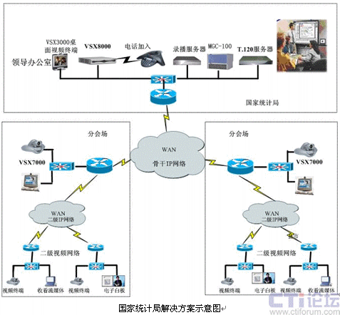 為確保如此巨大的視頻會議系統(tǒng)的應(yīng)用效果,視頻會議系統(tǒng)的各個設(shè)備全部采用POLYCOM公司的產(chǎn)品。寶利通(POLYCOM)公司依靠自身豐富的經(jīng)驗、領(lǐng)先的產(chǎn)品和技術(shù)以及豐富的項目部署經(jīng)驗,結(jié)合國家統(tǒng)計局的實際需求,提出了全套的視頻會議系統(tǒng)解決方案,并最終憑借產(chǎn)品出色的視音頻質(zhì)量、良好的穩(wěn)定性和先進(jìn)的技術(shù)、以及出色的服務(wù)贏得了用戶的認(rèn)可,成功中標(biāo)國家統(tǒng)計局視頻會議系統(tǒng)項目.該系統(tǒng)可最大限度地發(fā)揮其現(xiàn)有IP寬帶網(wǎng)絡(luò)的優(yōu)勢,加快對具體事件的處理速度,節(jié)約辦事人員的路途時間,最大限度地提高政府的辦公效率,降低辦公費(fèi)用。