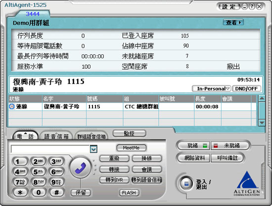 圖:AltiGen電話進線后的主畫面,即有轉(zhuǎn)接、多方會議、保留等功能鍵,達到全方位通訊。