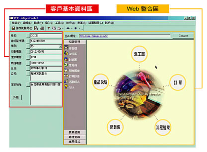 AltiGen可整合Web機制,Web為全世界Internet的標(biāo)準(zhǔn)介面,更是整合全球資源達無遠(yuǎn)弗屆境界的功臣,同時企業(yè)主可在其上輕易開發(fā)或整合其他程式,更可整合Web跑單 (Work Flow)、訂單等功能,使用者可一邊與客戶通話,一邊在電腦螢?zāi)簧舷掠唵位蚍峙晒ぷ,?jié)省人工跑單作業(yè)時間,提升作業(yè)效率,同時對于跑單狀況的追蹤管理皆可在統(tǒng)一介面獲得整合,任何更新的進度都可第一時間掌握。