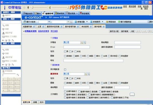 相信不久的將來,e-Contact+ 一定會成為各企業(yè)競相爭購的明星產(chǎn)品!截至目前,確認(rèn)導(dǎo)入此套產(chǎn)品的公司包含臺北縣政府的個案輔導(dǎo)管理、中華電信的客服活動關(guān)懷軟體、1955外籍勞工24小時咨詢保護專線,這三家公司透過業(yè)務(wù)自行定義物件中的調(diào)整客制化欄位,使用基礎(chǔ)模組的客戶管理,再配合其他相關(guān)模組物件導(dǎo)入,讓工作流程與資料再單一畫面下容易被管理。