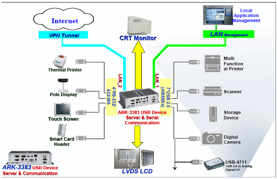 如何讓工業(yè)現(xiàn)場(chǎng)、設(shè)備應(yīng)用環(huán)境中眾多設(shè)備可以通過廣泛使用的USB 技術(shù)進(jìn)行傳輸和連接?現(xiàn)在有了最佳的解決方案。利用USB技術(shù)的速度、連通性和可用性,研華科技發(fā)布了具有7個(gè)USB 2.0 接口ARK-3383嵌入式工控機(jī)、透過USB 接口實(shí)現(xiàn)多設(shè)備高速連接的應(yīng)用得以最大范圍的使用,同時(shí)滿足工業(yè)現(xiàn)場(chǎng)環(huán)境下用戶設(shè)備連接性上的便利。 ARK-3383同時(shí)提供4個(gè)串口 RS-232/422/485配置、以及2個(gè)快速以太網(wǎng)連接端口,滿足現(xiàn)場(chǎng)需求密集的網(wǎng)絡(luò)連通。ARK-3383配置了高效能低功耗的、可升級(jí)的Intel® Pentium® M 1.4GHz處理器或超低電壓Intel® Celeron® M 1.0GHz處理器,以及可升級(jí)到1 GB DDR內(nèi)存, ARK-3383在提供用戶卓著的連通性與可靠高效的性能的同時(shí),提供極佳的緊湊型體積(264x69.2x137.25mm)滿足對(duì)安裝環(huán)境的要求。