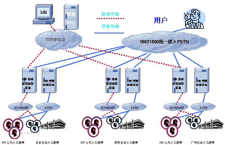 由于我國168/160聲訊服務業(yè)務開展較早,自從八十年代初在廣東建立第一家聲訊臺以來,目前國內四百多個城市都擁有168/160聲訊臺,從業(yè)人員達到數(shù)萬人,可以同時為數(shù)十萬計的消費者提供信息服務,每年創(chuàng)造數(shù)十億元的經濟效益,形成了一項發(fā)源于傳統(tǒng)電信行業(yè),而又區(qū)別傳統(tǒng)業(yè)務的增值服務業(yè)務。面對現(xiàn)代通信技術日新月異的發(fā)展,在中國電信集團的協(xié)調下,各地分公司大力改造傳統(tǒng)168/160聲訊臺的設備條件,摒棄原來各地聲訊臺各自為政的局面,利用先進的網絡技術將分布在全國的聲訊臺聯(lián)在一起,形成整合優(yōu)勢,開辟以呼叫中心接入服務、IP電話、集團電話、IDC業(yè)務、電話電子商務為核心的新興業(yè)務。