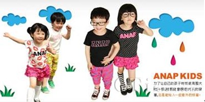 除了衣服質感舒適,ANAP KIDS以款式流行、設計CUTE的市場定位也贏得 不少青睞者的追捧。更有小物件、配飾等多類商品,滿足了喜歡時尚、裝扮的母親們想讓自己孩子穿得和其他人與眾不同衣服的需求。繼承了ANAP傳統(tǒng)的ANAP KIDS是一個非!氨挤拧、“充滿活力”的品牌,致力于協(xié)助父母給予最可愛的他(她)最安全、最舒適的呵護,將潮流、關愛、成長的生活觀念傳遞到每個家庭,讓所有3-6歲兒童共享同一份快樂。