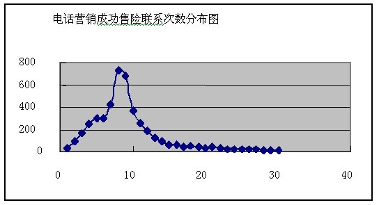 保險電話營銷成功分布概率圖如下,其中:橫坐標(biāo)為撥打電話的次數(shù),縱坐標(biāo)代表最終成交的保單數(shù)量。