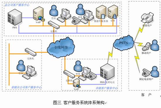 為了幫助企業(yè)支撐其全國(guó)業(yè)務(wù)的開(kāi)展,企業(yè)需要一個(gè)定位清晰、分工明確、立體的客戶(hù)服務(wù)業(yè)務(wù)軟件,賽迪呼叫針對(duì)這樣的需求,提出包括總公司、省分公司、市支公司三個(gè)層次客戶(hù)服務(wù)業(yè)務(wù)軟件的整體系統(tǒng)架構(gòu)。下面就是這個(gè)體系的架構(gòu)圖: