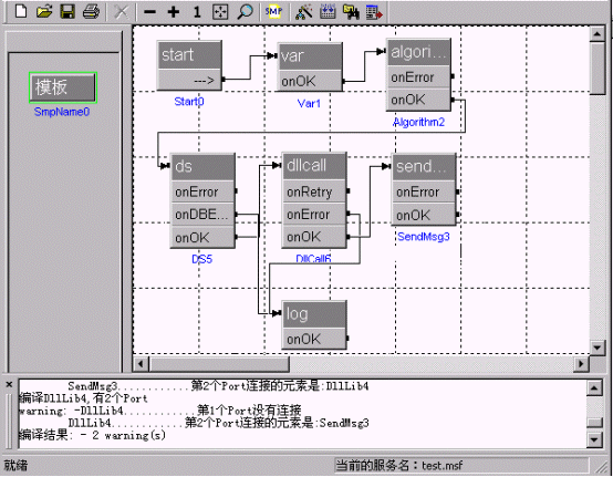 1) SCE-業(yè)務生成器,通過圖形化的方法設計短信業(yè)務,生成業(yè)務邏輯的XML語言。
