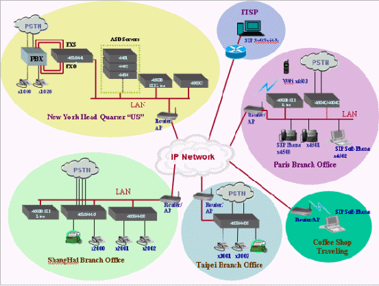 MOSA的SIP IP-PBX是一個完整的商用交換機(jī)系統(tǒng),能提供企業(yè)完整的通信服務(wù),因應(yīng)各種不同接口的連結(jié)需求,例如公眾電信系統(tǒng)(PSTN)、SIP服務(wù)商、傳真機(jī)、電話機(jī)、語音信箱、SIP IP Phone、SIP Soft-phone、Wifi-Phone以及各種SIP終端設(shè)備等等,MOSA的SIP IP-PBX提供模塊化的接口連接設(shè)備,每一種接口連接設(shè)備均配備有以太網(wǎng)絡(luò)接口,可以透過IP網(wǎng)絡(luò)相互連結(jié),使得各分公司之間通信零距離。MOSA SIP IP-PBX除了解決基本的接口連接外,也提供各式各樣的應(yīng)用服務(wù)服務(wù)器(Application Service Devices),增進(jìn)整體系統(tǒng)的功能,譬如:網(wǎng)絡(luò)型電話會議,網(wǎng)絡(luò)型廣播,移動辦公功能等。