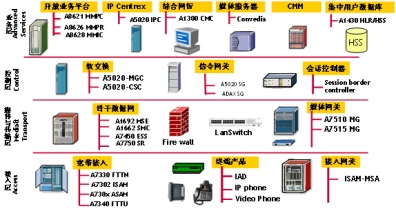 上海貝爾阿爾卡特提供完整的NGN解決方案,以軟交換為核心,綜合大容量綜合接入網(wǎng)關(guān),與PSTN互通的中繼網(wǎng)關(guān)TGW,適合寬帶用戶(hù)(以太網(wǎng),DSL或者HFC)接入的IAD或者IP電話(huà),多媒體通信IP視頻終端等設(shè)備。方案提供了覆蓋所有接入方式的綜合業(yè)務(wù),既考慮了網(wǎng)絡(luò)的繼承,也滿(mǎn)足網(wǎng)絡(luò)演進(jìn)和發(fā)展的需要。