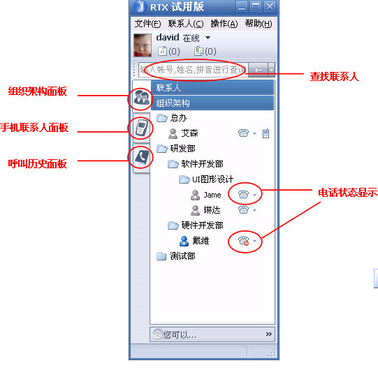 OmniRTX插件實現(xiàn)了在RTX界面上,直接對企業(yè)內(nèi)部電話終端進行基本呼叫業(yè)務(wù)和電話增值業(yè)務(wù)的控制、設(shè)置和管理,更加方便的提供了企業(yè)內(nèi)部員工之間的交流,進一步改善企業(yè)與客戶之間的溝通渠道,所有的溝通和交流不再受時間、空間的限制,更高質(zhì)量的解決了企業(yè)在語音、文字、圖片以及視頻等多方面的效率問題!