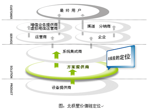 北極星軟件創(chuàng)建于1997年。作為專業(yè)的VoIP增值業(yè)務(wù)解決方案供應(yīng)商,北極星軟件秉承“溝通世界(Connecting the world)”的理念,致力于以新技術(shù)推動人和信息的溝通,為電信運(yùn)營商、虛擬電信運(yùn)營商、電信增值業(yè)務(wù)運(yùn)營商和廣大中小企業(yè)提供電信級的VoIP增值方案。