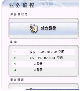 系統(tǒng)管理員能夠通過web監(jiān)控所有電話線、座席、系統(tǒng)資源的占用情況;能夠查看、統(tǒng)計呼叫次數(shù)、呼入接通率等參數(shù)指標(biāo)。
