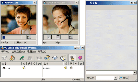V2 Conference在企業(yè)內(nèi)的全面的實(shí)施,可以在完全取代以前的單純語音會(huì)議,實(shí)現(xiàn)視頻的會(huì)議,真正做到"千里溝通,面對(duì)面"。同時(shí)V2 Conference還可提供實(shí)時(shí)文字的交互以及共享電子白板、交換文件的功能,更符合業(yè)務(wù)交流的要求,可以想象視頻會(huì)議系統(tǒng)將前所未有地提升企業(yè)的會(huì)議效率和管理水平,為企業(yè)帶來非常可觀的直接和間接的經(jīng)濟(jì)效益。