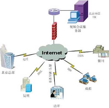 隨著業(yè)務(wù)和市場(chǎng)覆蓋的不斷提高,這些傳統(tǒng)企業(yè)的各種分支機(jī)構(gòu)也遍及從省、市一直到縣、鄉(xiāng)的各個(gè)區(qū)域,這種地理位置上的多樣性也造成了網(wǎng)絡(luò)環(huán)境的復(fù)雜,各種辦事處、分廠、子公司等分支機(jī)構(gòu)的接入方式往往會(huì)包括撥號(hào)、ISDN、ADSL、DDN等多種寬窄帶形式。此外,隨著企業(yè)信息化建設(shè)中對(duì)網(wǎng)絡(luò)安全問(wèn)題的日益重視,視頻會(huì)議系統(tǒng)的建設(shè)不能對(duì)企業(yè)防火墻造成任何安全漏洞也成為企業(yè)信息化主管的一種普遍共識(shí)。