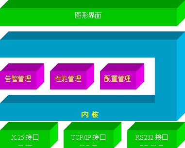 N7MS運(yùn)行于上海貝爾統(tǒng)一網(wǎng)管平臺(tái)SMAP之上,其設(shè)計(jì)參照了CORBA體系結(jié)構(gòu)。系統(tǒng)由三類基本模塊組成:接入模塊AM、功能模塊FM、表達(dá)模塊PM,各模塊利用系統(tǒng)內(nèi)核(ORB)和SMAP提供的各項(xiàng)服務(wù)功能協(xié)調(diào)工作,而無需知道是否與其他模塊物理地位于同一臺(tái)機(jī)器上,這種結(jié)構(gòu)確保了系統(tǒng)具有良好的擴(kuò)充性。通過配置不同數(shù)量、不同處理能力的服務(wù)器,可以方便地實(shí)現(xiàn)對(duì)省級(jí)網(wǎng)絡(luò)到國(guó)家級(jí)網(wǎng)絡(luò)的管理需求。 此外,系統(tǒng)還對(duì)外提供Q3接口,實(shí)現(xiàn)與其他類型網(wǎng)管系統(tǒng)的互連,因此具有良好的開放性。